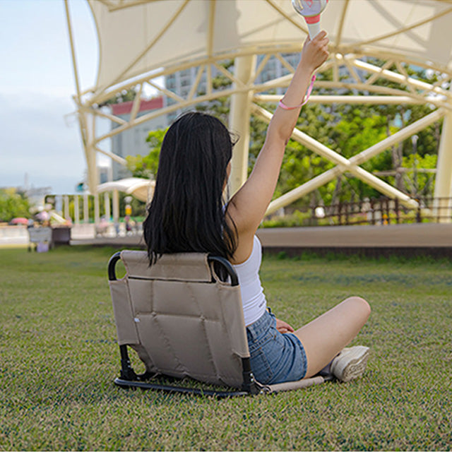 With its padded seating structure, wide backrest, and compact folding design, this lightweight chair provides stable support and comfort even when sitting directly on the ground. Designed for portability and everyday use, it’s the perfect companion for camping, festivals, and travel.